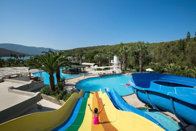 Denize sıfır tesisin 250 m uzunluğunda MAVİ BAYRAKLI plajı bulunuyor. Güneş şemsiyesi ve havlu, plaj ve havuzda ücretsiz. TOPLAM 2 HAVUZU VE 2 KAYDIRAKLI AQUA PARKI MEVCUTTUR
