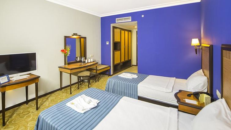 * Minibar; 1adet kola, 1 adet diyet kola, 1 adet sprite, 1 adet 7up, 2 adet soda, 2 adet küçük meyve suyu, girişte 1 kez doldurulur. 2 adet küçük su günlük olarak doldurulur.